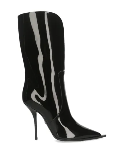 Bottes en Cuir Vernis noires - Talon 10.5 cm