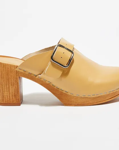 Sabots en Cuir Olivia camel clair - Talon 8 cm