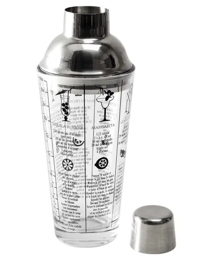 Shaker en verre avec recettes gris/transparent - 45 cl