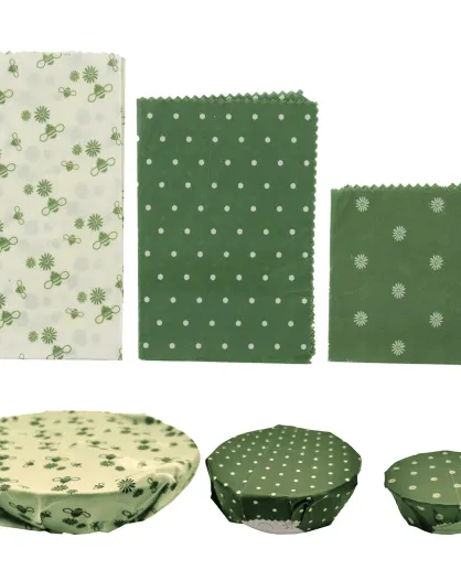 3 Emballages alimentaire cire abeille coloris aléatoire vert/ivoire - 35x35 cm