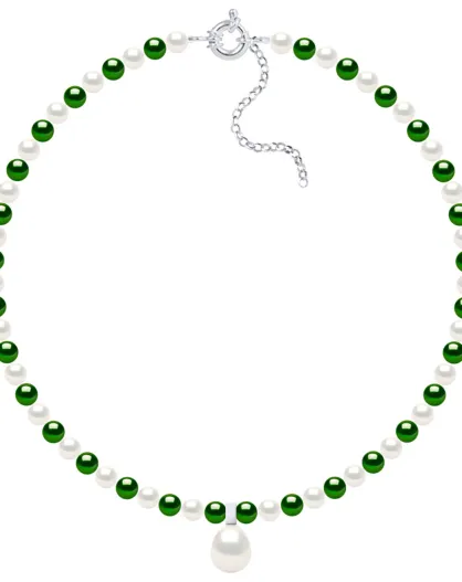 Collier Rang en Argent & Perle de Culture d'Eau Douce vert malachite/blanc naturel