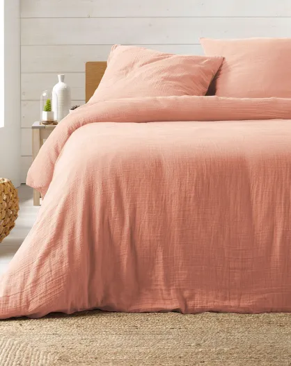 Parure housse de couette 100% Gaze de Coton Angelia rose