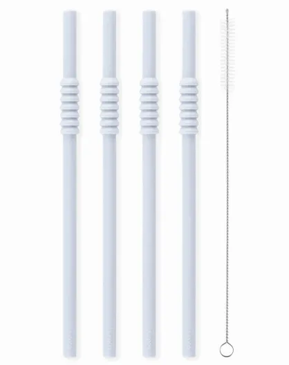 4 Pailles en silicone avec écouvillon Bistro bleu pastel - 24 cm