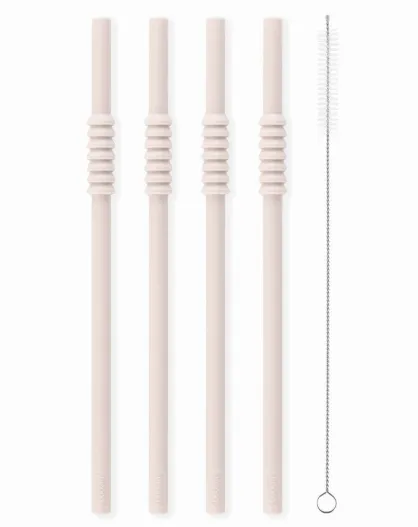 4 Pailles en silicone avec écouvillon Bistro rose pastel - 24 cm
