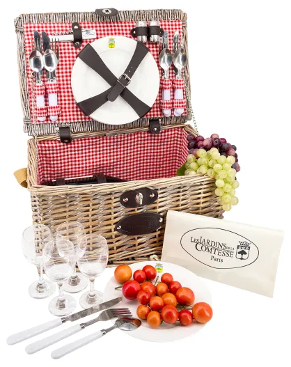 Panier à pique-nique en Osier Sully Vichy rouge - 4 Personnes