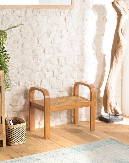 Tabouret marron de mindi et rotin naturel Eden marron - 67x38x54 cm