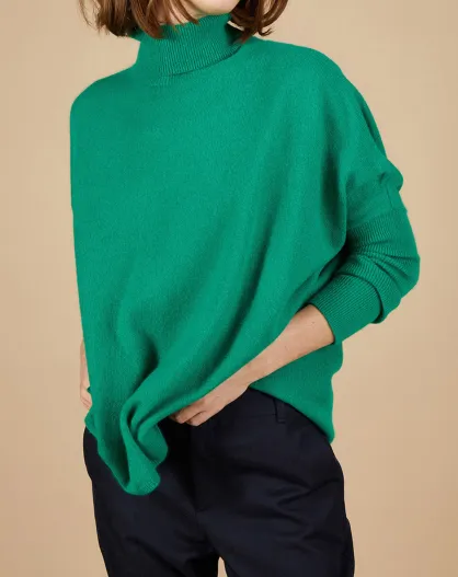 Pull poncho 100% Cachemire Lola col roulé vert impérial