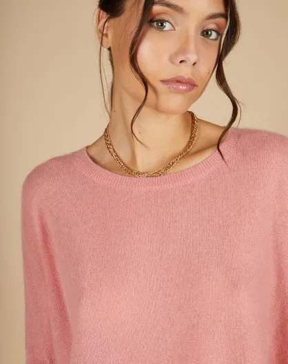 Pull poncho 100% Cachemire Alizée col rond bois de rose