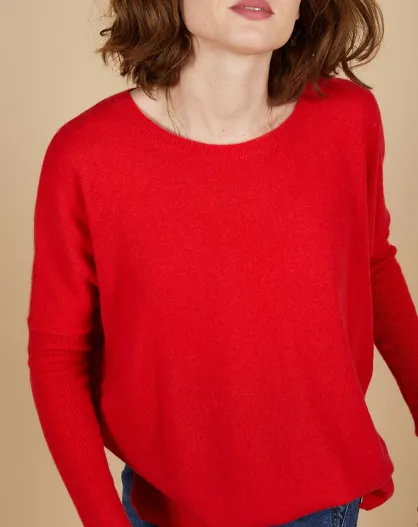 Pull poncho 100% Cachemire Alizée col rond rouge carmen