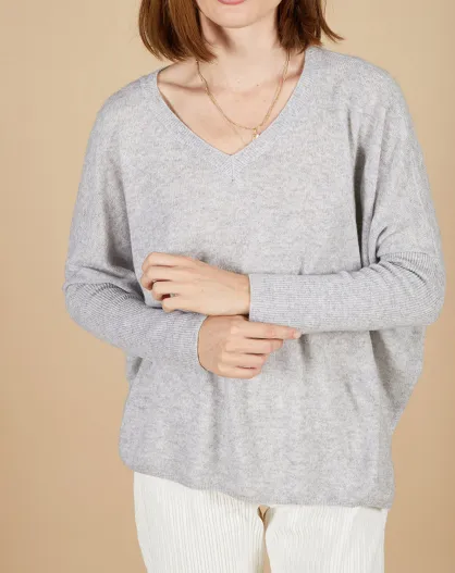 Pull poncho 100% Cachemire Emma col V gris chiné clair