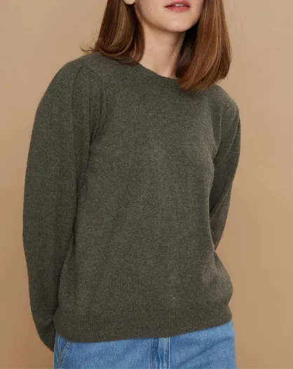 Pull 100% Cachemire Ines col rond tressé kaki grisé