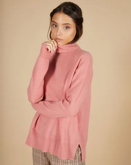 Pull ample 100% Cachemire Alicia Col roulé à poches bois de rose