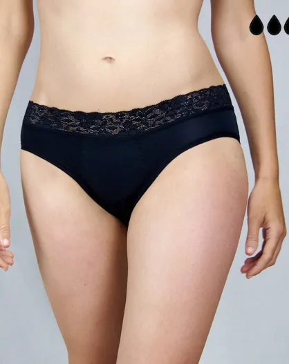 3 Culottes Menstruelles avec dentelle (flux moyen) en Coton Bio noires