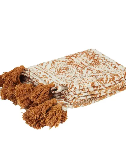 Plaid coton imprimé jaune - 120x150 cm