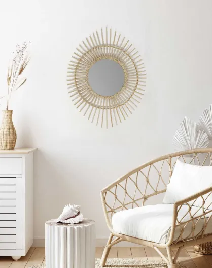Miroir rond modèle soleil en rotin kally miel - D.100 cm