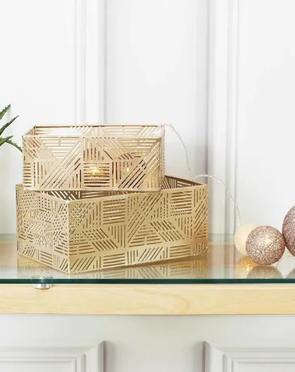 Boite avec couvercle dorée - 12x14.8x12 cm