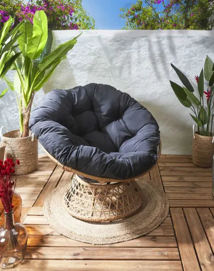 Fauteuil Cancun noir/naturel - 100x90x100 cm