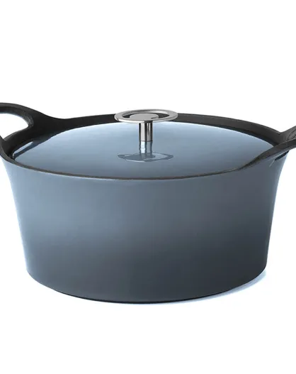 Cocotte ronde fonte de fer émaillée avec couvercle Volcan bleu denim - 12.5x24.5x20.5 cm