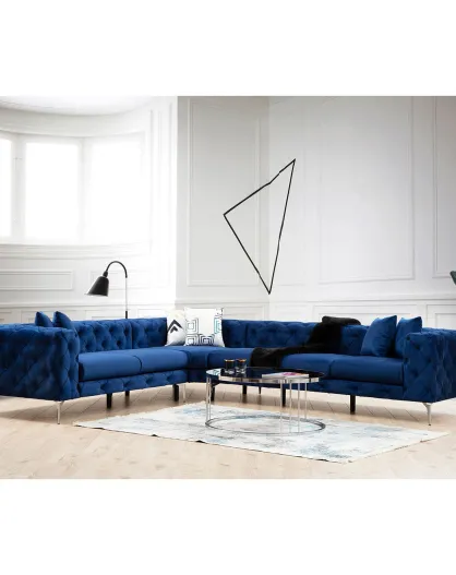Canapé d'angle droit Como bleu marine - 270x310x90x73 cm
