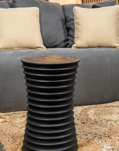 Tabouret en bois d'acacia brulé madi noir - D.30x45 cm