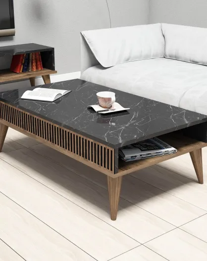 Table basse Milan noyer/noir - 105x34.6x60 cm