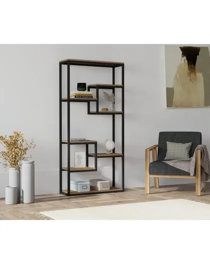 Bibliothèque emina noyer/noir - 85x182x29 cm