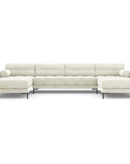 Canapé panoramique velvet bali 7 places beige clair - 383x185x75 cm