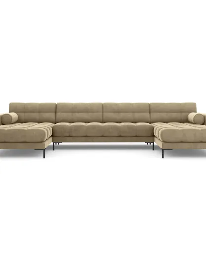 Canapé panoramique velvet bali 7 places beige - 383x185x75 cm