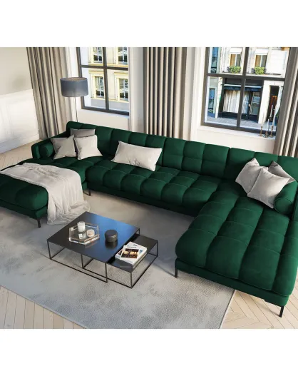 Canapé panoramique velvet bali 7 places vert bouteille - 383x185x75 cm