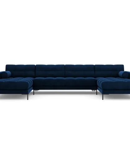 Canapé panoramique velvet bali 7 places bleu roi - 383x185x75 cm