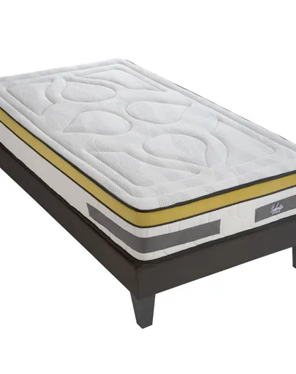 Ensemble Matelas mémoire de forme + Sommier kit Aubertin anthracite/jaune/blanc - 90x200 cm