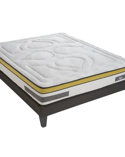 Ensemble Matelas mémoire de forme + Sommier kit Aubertin anthracite/jaune/blanc - 160x200 cm