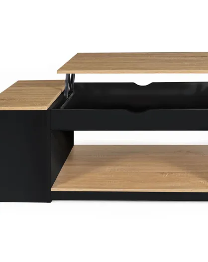 Table basse relevable avec coffre Elina bois/noir - 110x60x45 cm