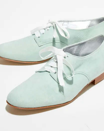 Derbies en Velours de Cuir vert d'eau