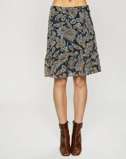 Jupe courte en mousseline à imprimé cachemire bleu/vert