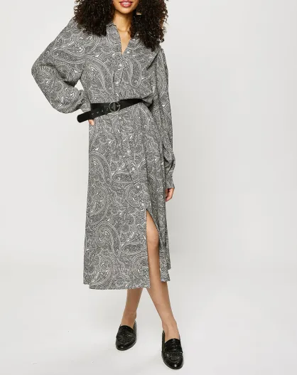 Robe-chemise à ceinture et imprimé cachemire blanc/gris