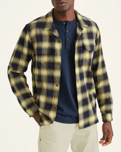 Chemise Classique LS Camp à carreaux touché flanelle bleu marine/jaune