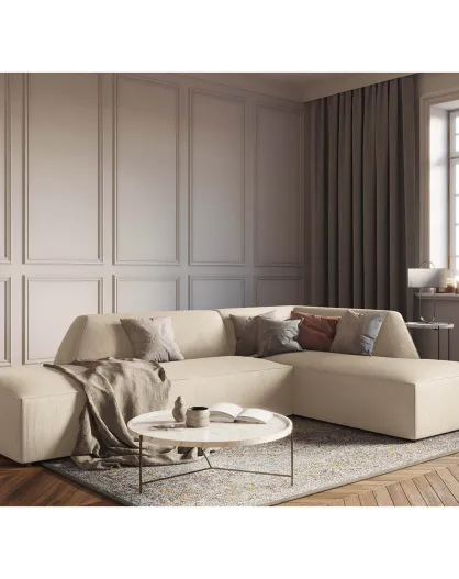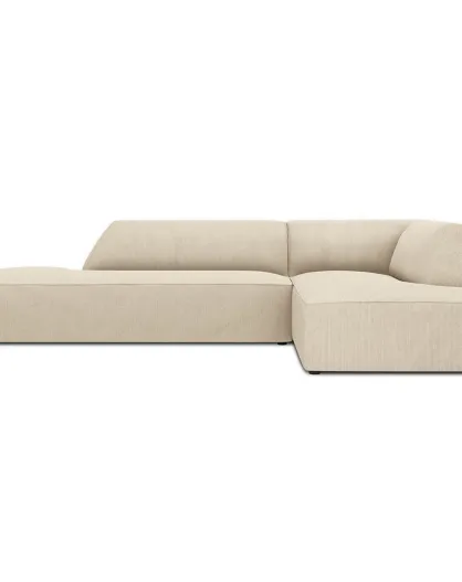 Canapé d'angle droit Velours Côtelé Sao 4 places beige clair - 273x180x69 cm