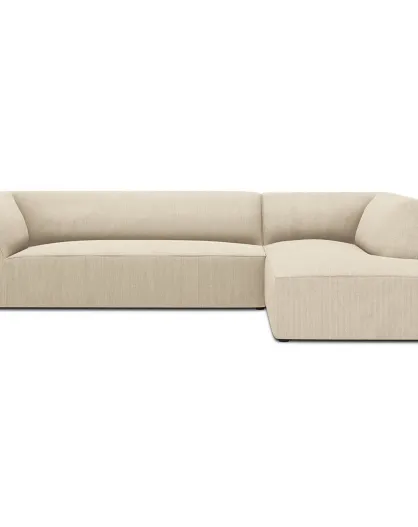 Canapé d'angle droit Velours Côtelé Sao 4 places beige clair - 273x180x69 cm