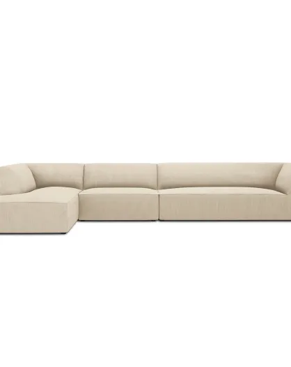 Canapé d'angle gauche Velours Côtelé Sao 5 places beige clair - 366x180x69 cm