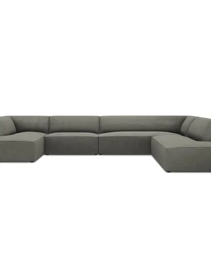 Canapé Panoramique droit Velours Côtelé Sao 7 places gris clair - 366x273x69 cm