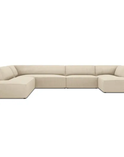 Canapé Panoramique gauche Velours Côtelé Sao 7 places beige clair - 366x273x69 cm