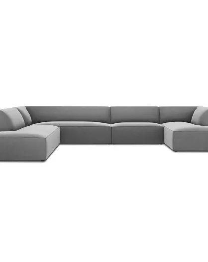Canapé Panoramique gauche Velours Sao 7 places gris - 366x273x69 cm