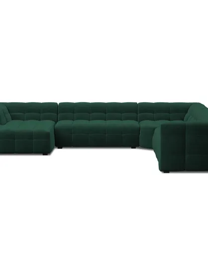 Canapé Panoramique droit Velours Vesta 8 places vert bouteille - 378x322x68 cm