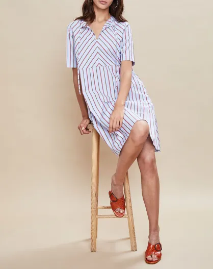 Robe courte imprimée en soie avec fronces bleu/rouge