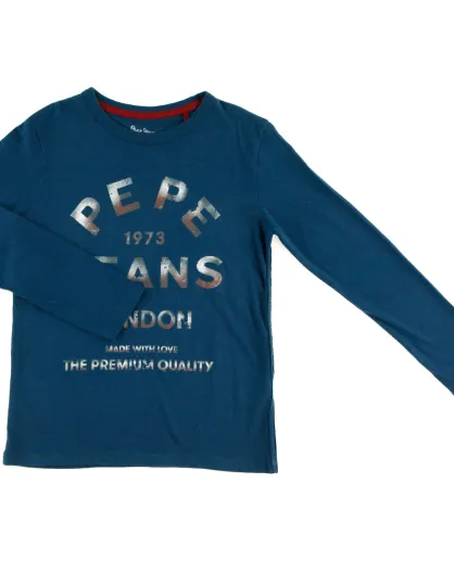 T-Shirt en Coton Logo Pepe Peinture bleu marine