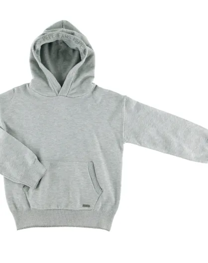 Pull à capuche en Maille mélangée lisérés irisés gris