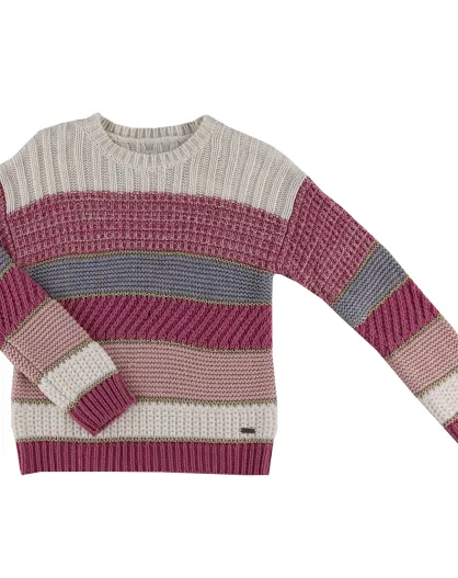 Pull Julie en Maille mélangée rayé Lurex rose/blanc