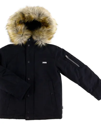 Parka à capuche fausse fourrure noire