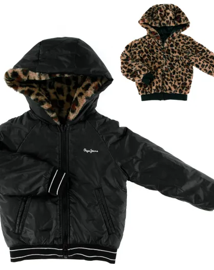 Blouson réversible intérieur fourré Léopard noir